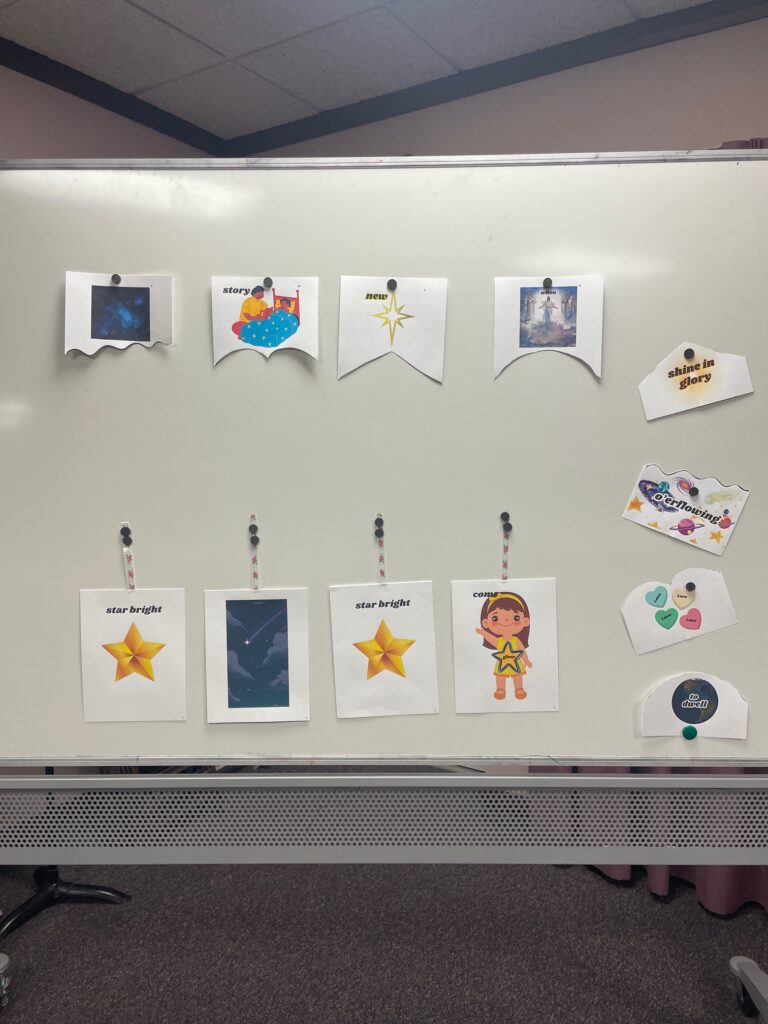 I will glue the chorus picture flip chart back to back for each phrase. I will attach a ribbon to them so they can turn easily. I will hold the ribbon on our board with a magnet, allowing me or a child to turn the pictures front to back as we sing each phrase. With this method, I can utilize a child who has been singing their best to help me with this part of the song. Other children will help with the verses to match the puzzle pieces. As they get better at the song, I will remove puzzle pieces a few at a time, sometimes the top piece, sometimes the bottom piece.